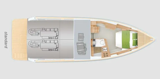 Gäste kaufen und bereiten ihre Speisen selbst zu; die Pantry steht zur freien Nutzung bereit. Ist ein Skipper an Bord, übernimmt die Crew dessen Verpflegungskosten.