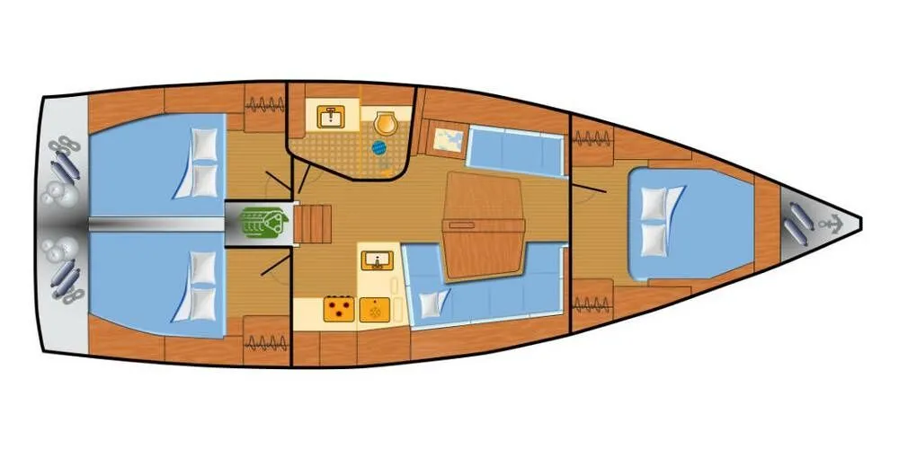 Gäste kaufen und bereiten ihre Speisen selbst zu; die Pantry steht zur freien Nutzung bereit. Ist ein Skipper an Bord, übernimmt die Crew dessen Verpflegungskosten.