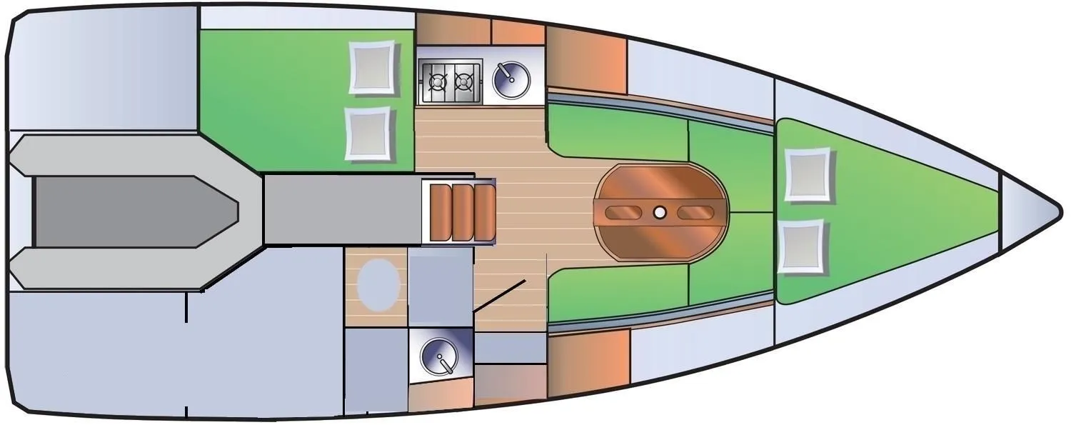 Gäste kaufen und bereiten ihre Speisen selbst zu; die Pantry steht zur freien Nutzung bereit. Ist ein Skipper an Bord, übernimmt die Crew dessen Verpflegungskosten.