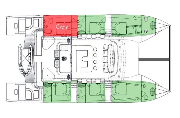Gäste kaufen und bereiten ihre Speisen selbst zu; die Pantry steht zur freien Nutzung bereit. Ist ein Skipper an Bord, übernimmt die Crew dessen Verpflegungskosten.