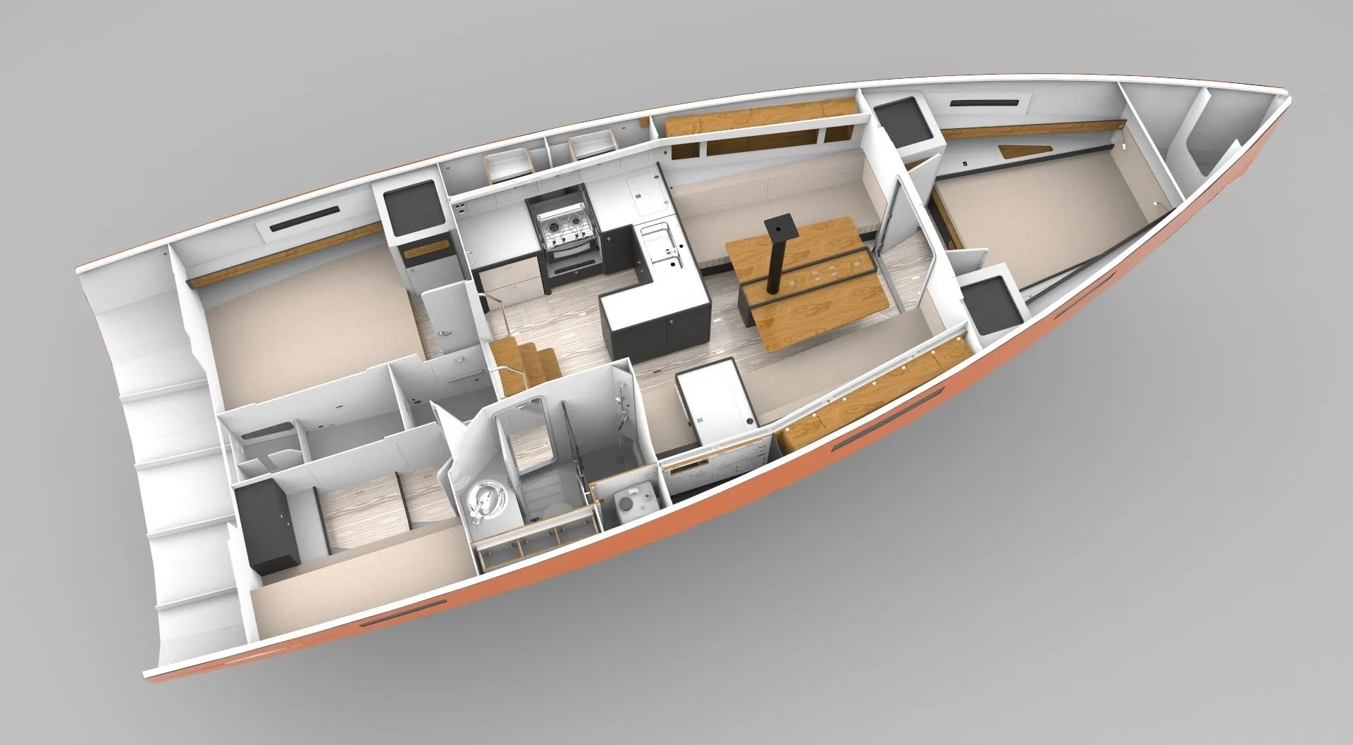 Gäste kaufen und bereiten ihre Speisen selbst zu; die Pantry steht zur freien Nutzung bereit. Ist ein Skipper an Bord, übernimmt die Crew dessen Verpflegungskosten.
