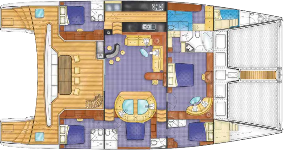 Продукты и готовку берут на себя гости; камбуз полностью в их распоряжении. Если нанят капитан, его питание тоже оплачивают гости.